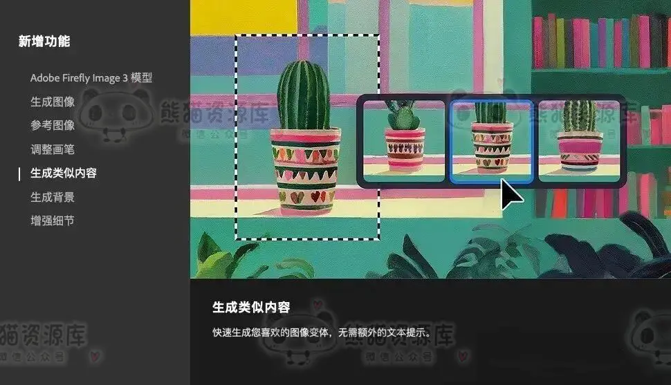 包含21种强大的滤镜效果,每种效果都是不同的艺术风格,也可以直接吸附或折叠到任意窗口,独立窗口方便使用。目前正式版的PS 2025还没有这个功能,只有Beta版才有!