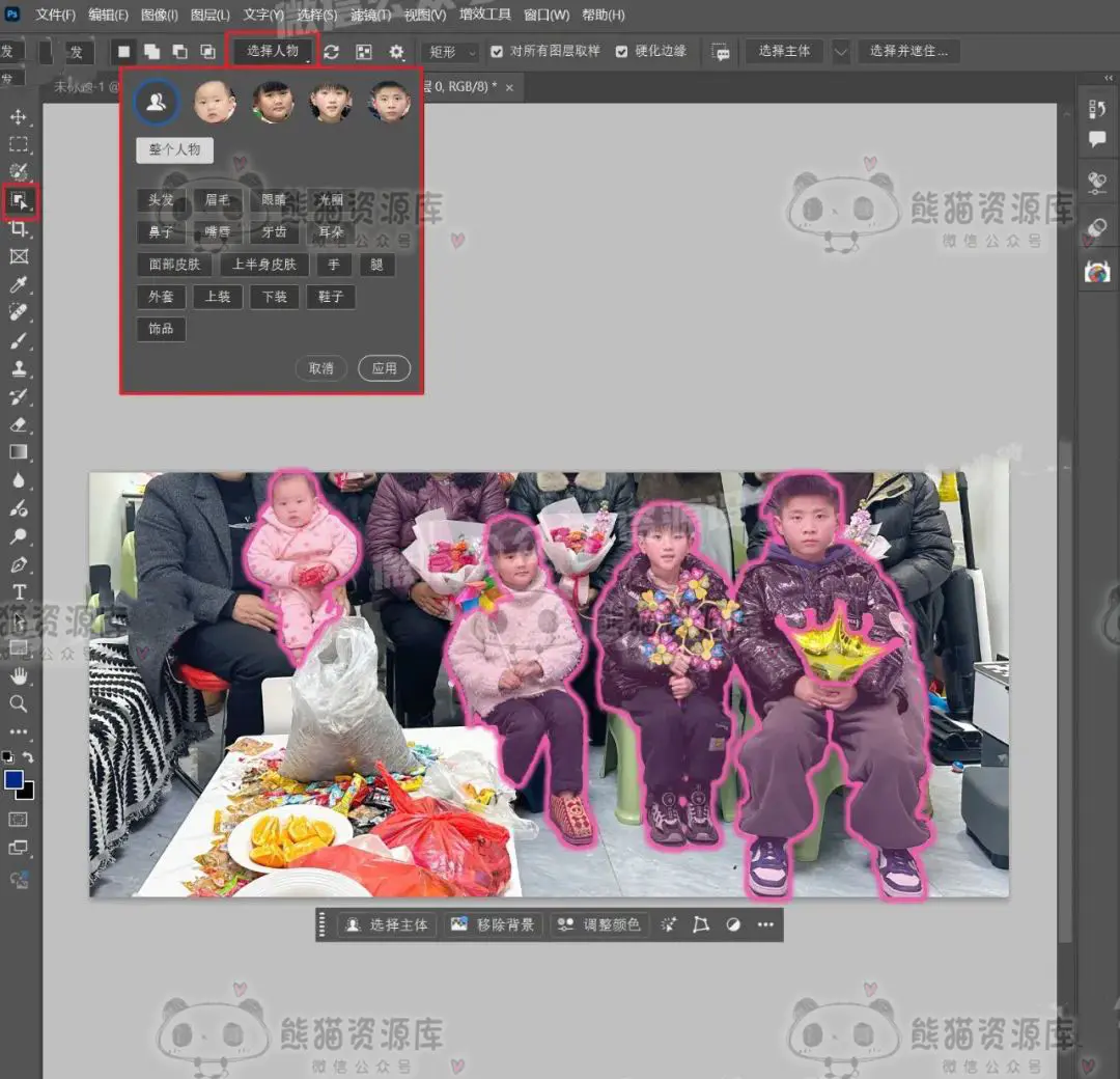 AI支持蒙版:选择人物全新的选择功能,帮助您快速遮住人物和特征,例如皮肤、眼睛、牙齿等。