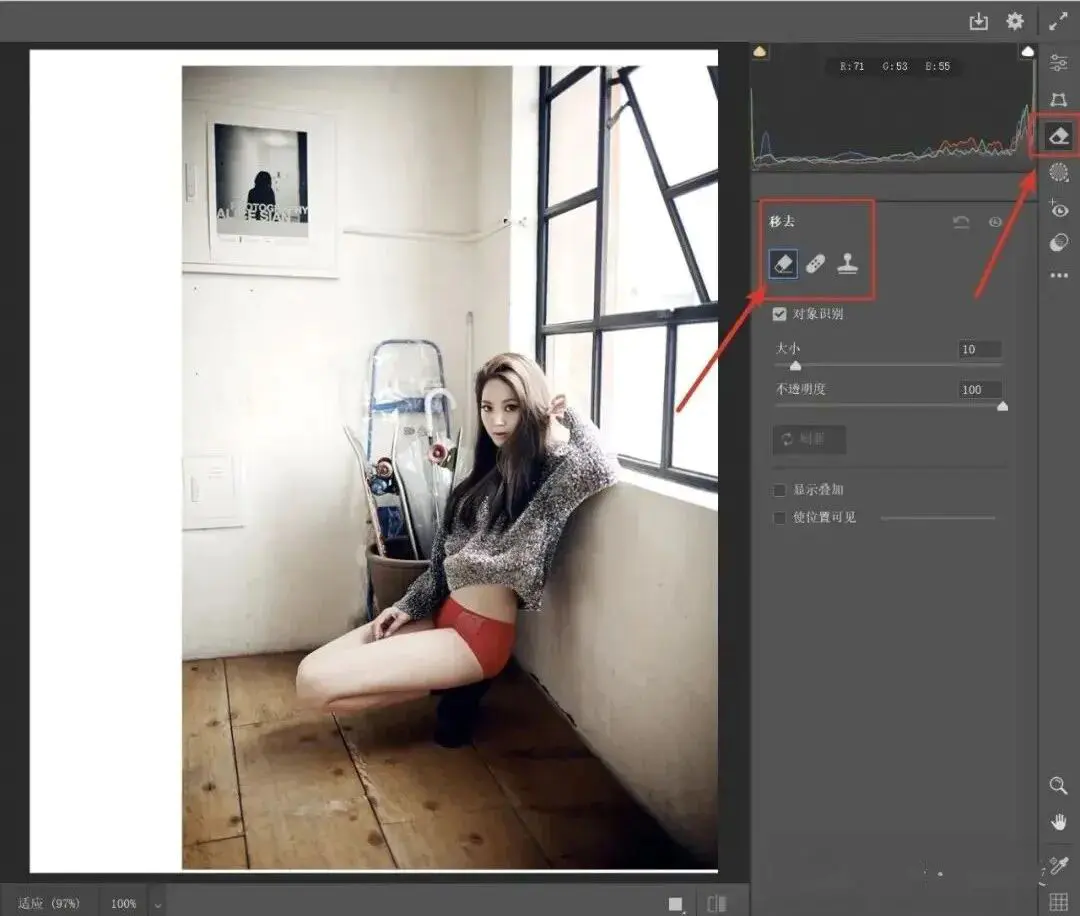 去除反射(技术预览)自动去除透过玻璃窗户拍摄的 RAW 照片中的反射。